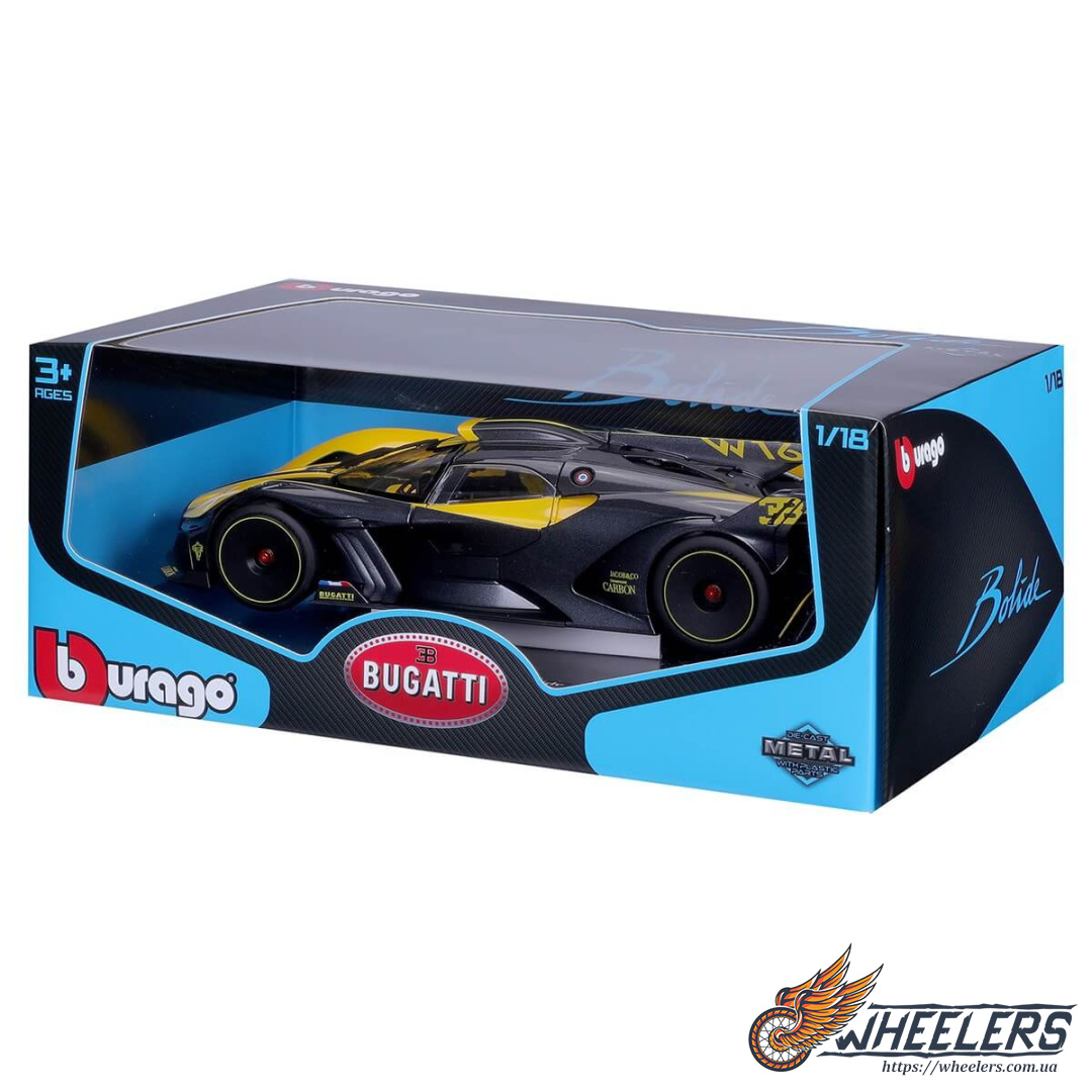 Масштабована автомодель Bugatti Bolide - це деталізована копія справжнього автомобіля, виконана в масштабі 1:18.
