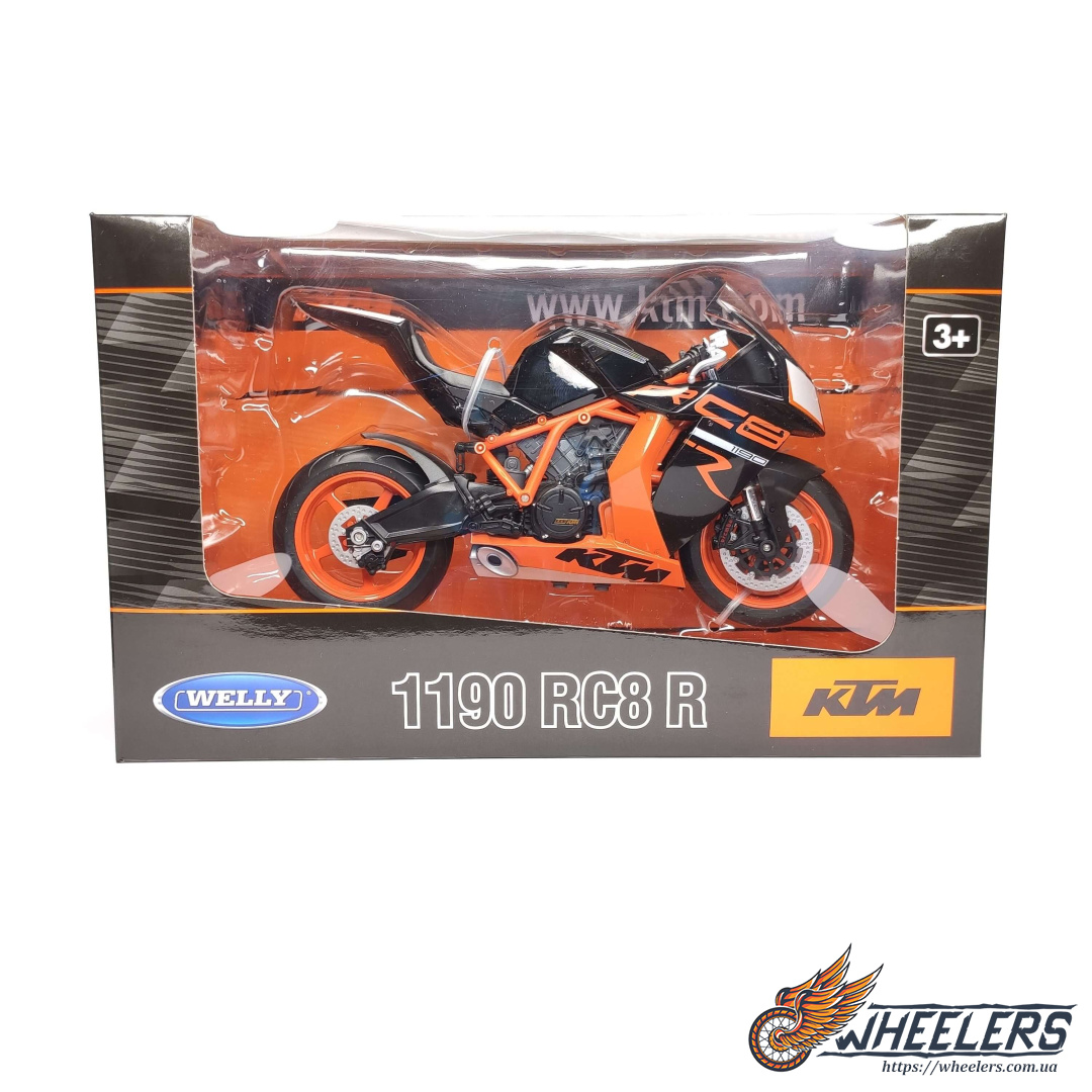 Добре деталізована модель мотоцикла KTM 1190 RC8 R від компанії Welly - одного зі світових лідерів виробників масштабних моделей.